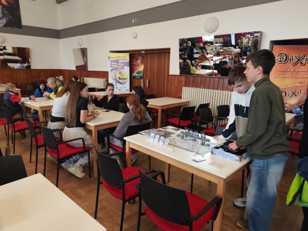 Všichni jsme ale prolezli sokolovnu "od sklepa po půdu", abychom vyzkoušeli všemožné hry – deskové i online, virtuální realitu, prohlédli si kostýmy či obrázky k doprovodné výstavě, které se účastnili také žáci z naší školy.