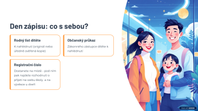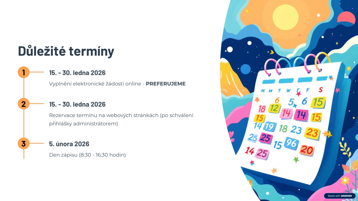 Formální a motivační část zápisu žáků do 1. ročníku se uskuteční ve čtvrtek 5. února 2026.
