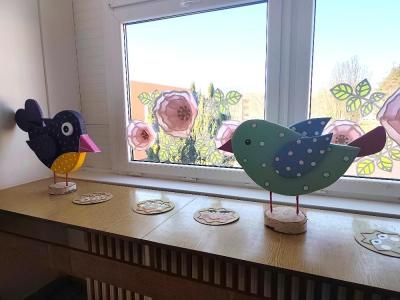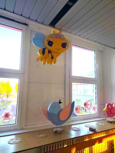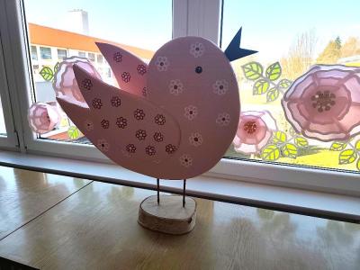 Během práce si žáci vyzkoušeli různé výtvarné techniky a naučili se bezpečně zacházet s mnoha nástroji. Výsledkem jejich snažení jsou nápadité dekorace – jemné růžové květy, veselé včelky, barevní ptáčci i roztomilé ovečky. Jednotlivé prvky se navzájem doplňují a vytvářejí příjemnou jarní atmosféru, která zpříjemňuje příchod do školy.