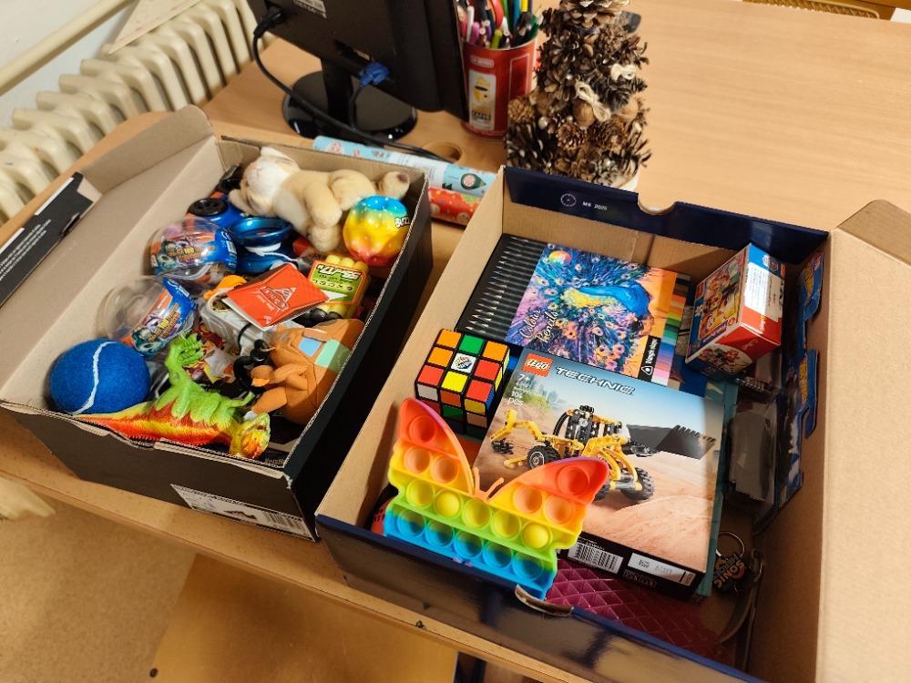 Dárky jsme začali promýšlet, kompletovat a shromažďovat od konce listopadu a do čtvrtka 4. 12. jsme je s dětmi přenesli na sběrná místa v Boskovicích. Některé dárečky jsme předali také do Dětského domova v Boskovicích.