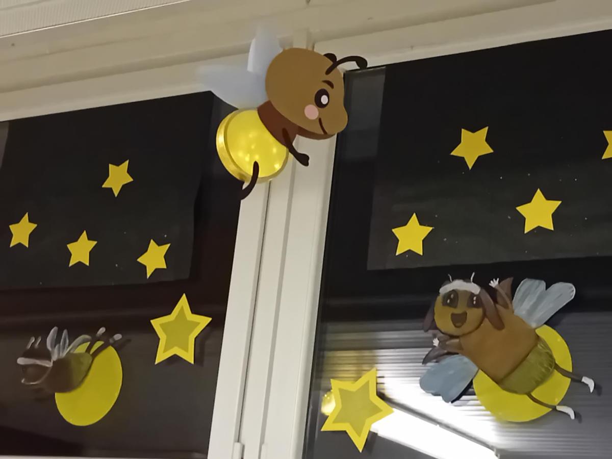 Naše školní chodba se proměnila v místo, kde to svítí, bliká a láká k zastavení. Žáci 4. A, 5. A, 7. A a 7. C se spojili a vytvořili výzdobu, která připomíná letní noc plnou drobných světýlek.