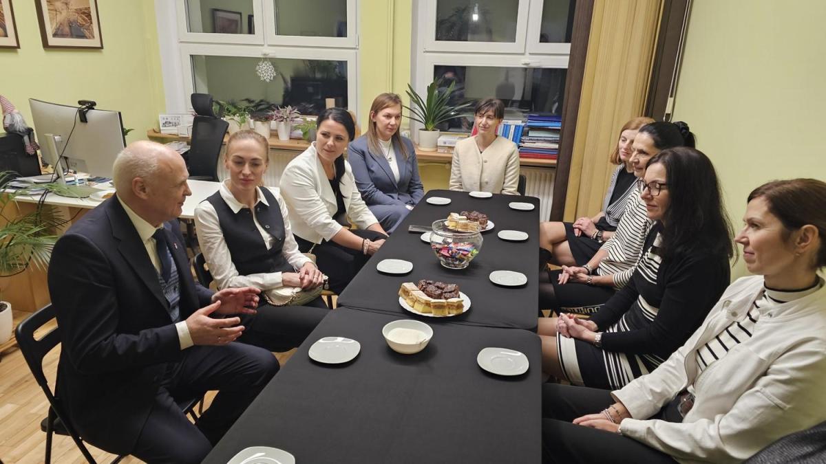 Součástí návštěvy byla společná večeře s představiteli školy i města, při níž jsme využili nejen znalostí angličtiny, ale brzy jsme pronikly též do polštiny.