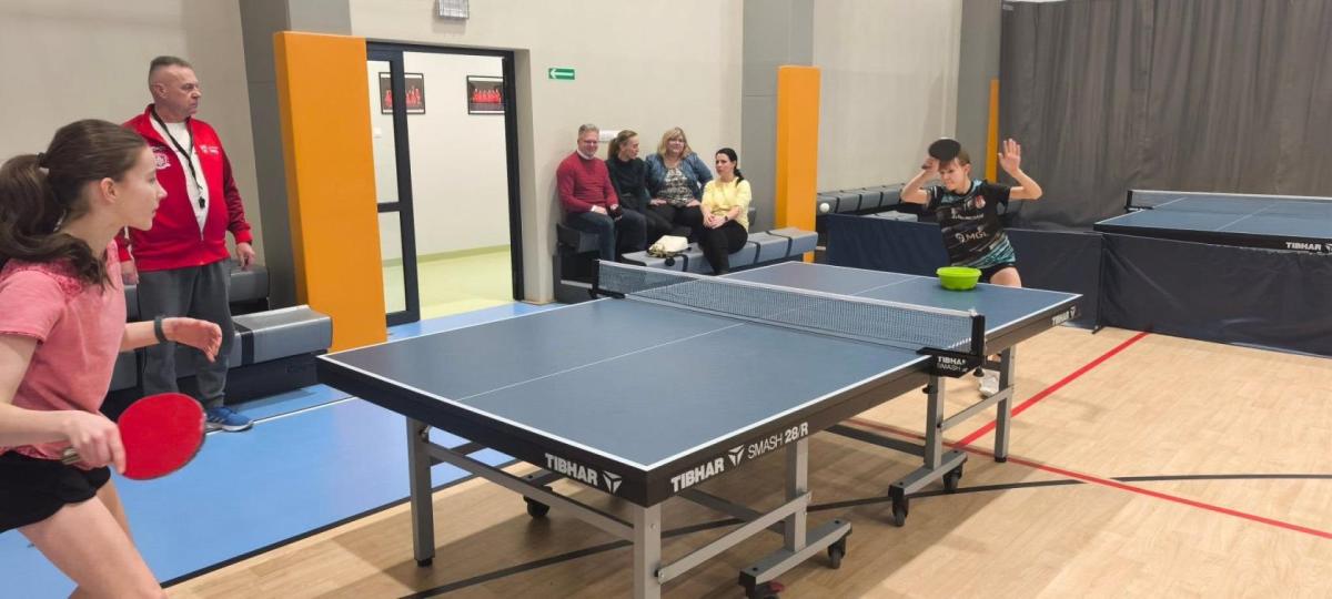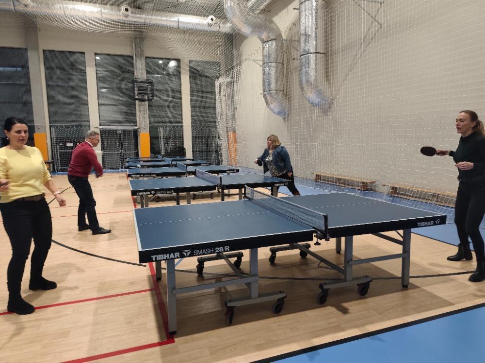 Pozvány jsme byly i na "black & white" karneval a v nově postavené sportovní hale propojené se školou jsme si zahrály také stolní tenis.