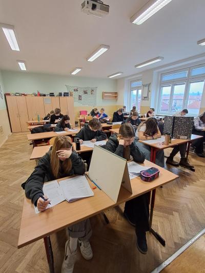 Žáci psali test z matematiky, českého jazyka a vyzkoušeli si nově i anglický jazyk. Testy jim následně dle přesně stanovených kritérií obodují naši vyučující, a žáci tak zjistí, jak by si v současné době vedli.