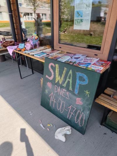 Výtěžek sběrové akce poputuje do nadstandardního vybavení školy pro děti. SWAP byl uspořádán formou nultého ročníku v rámci projektu 7. ročníku na téma odpady. Nesl podtitul "pro jednoho odpad, pro jiného poklad...". Přinesené věci jsme vystavili v prostoru CPVV a vše, co nenašlo svého nového majitele, poputuje na další charitativní místa.