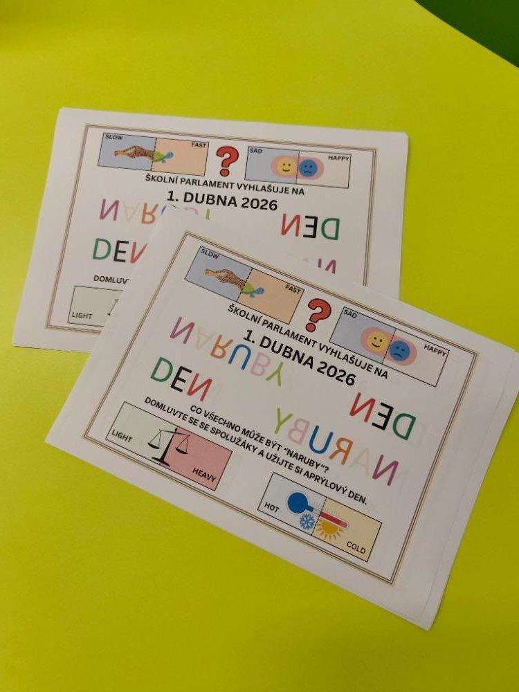 Zhodnotili jsme aktivity Týdne wellbeingu, pročetli jsme návrhy jednotlivých tříd na pravidla v odpočinkových zónách na škole a sestavili jejich konečnou podobu. Připomněli jsme si, že brzy díky hezkému počasí budeme moci trávit velké přestávky venku, takže i to s sebou nese pravidla pro hraní míčových her na hřišti, která s vedením školy vykomunikovali právě zástupci našeho parlamentu hned na podzim. Na závěr jsme se věnovali námětům na připravovaný Den naruby.