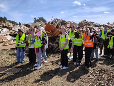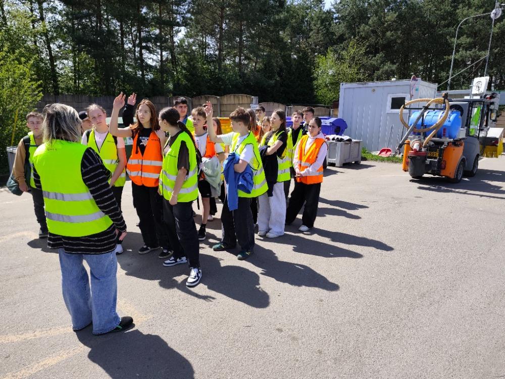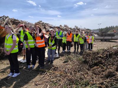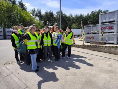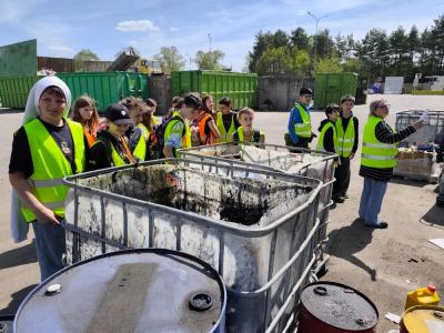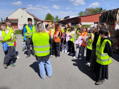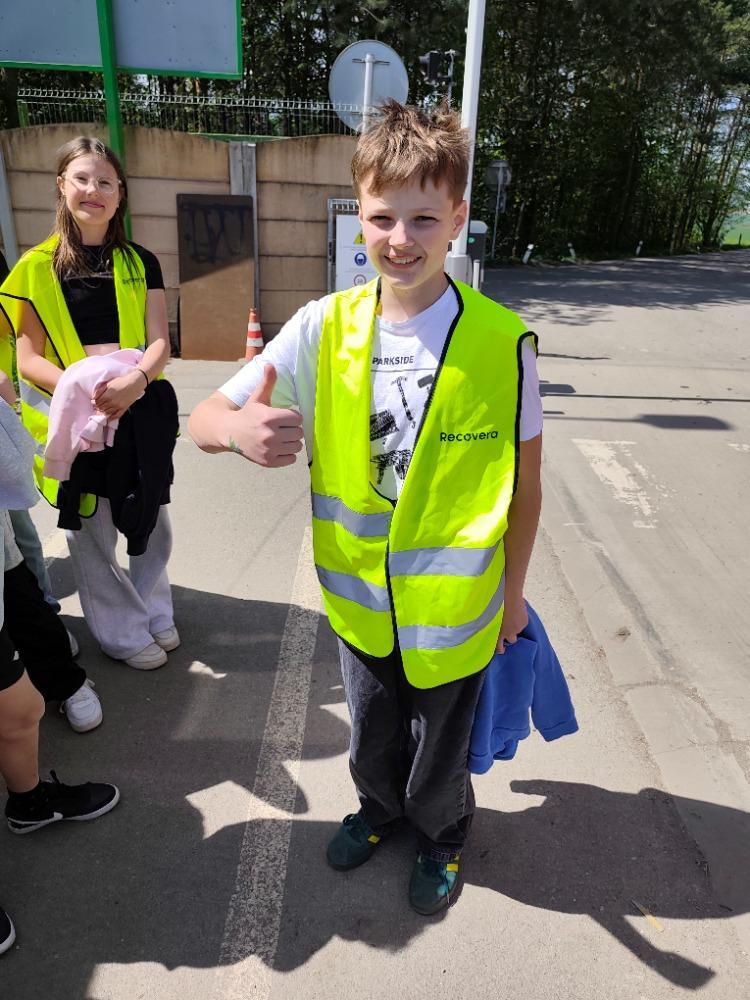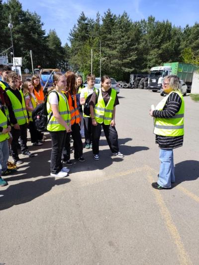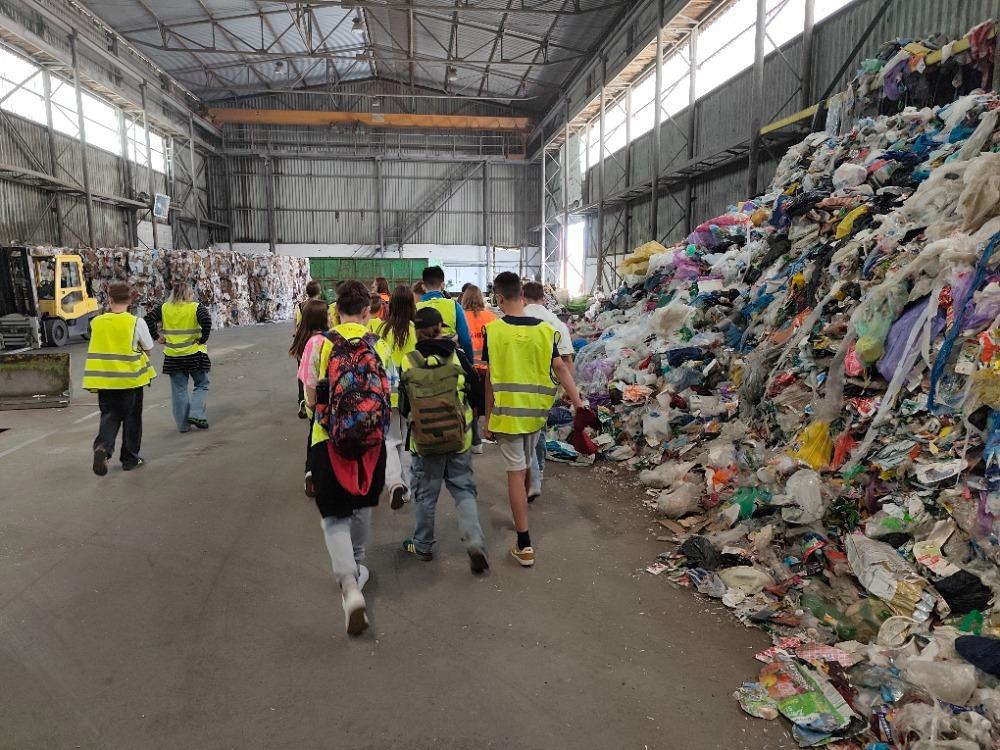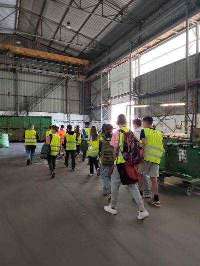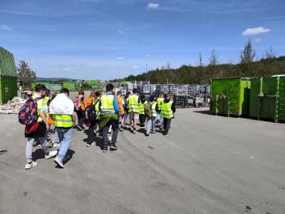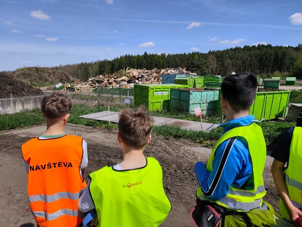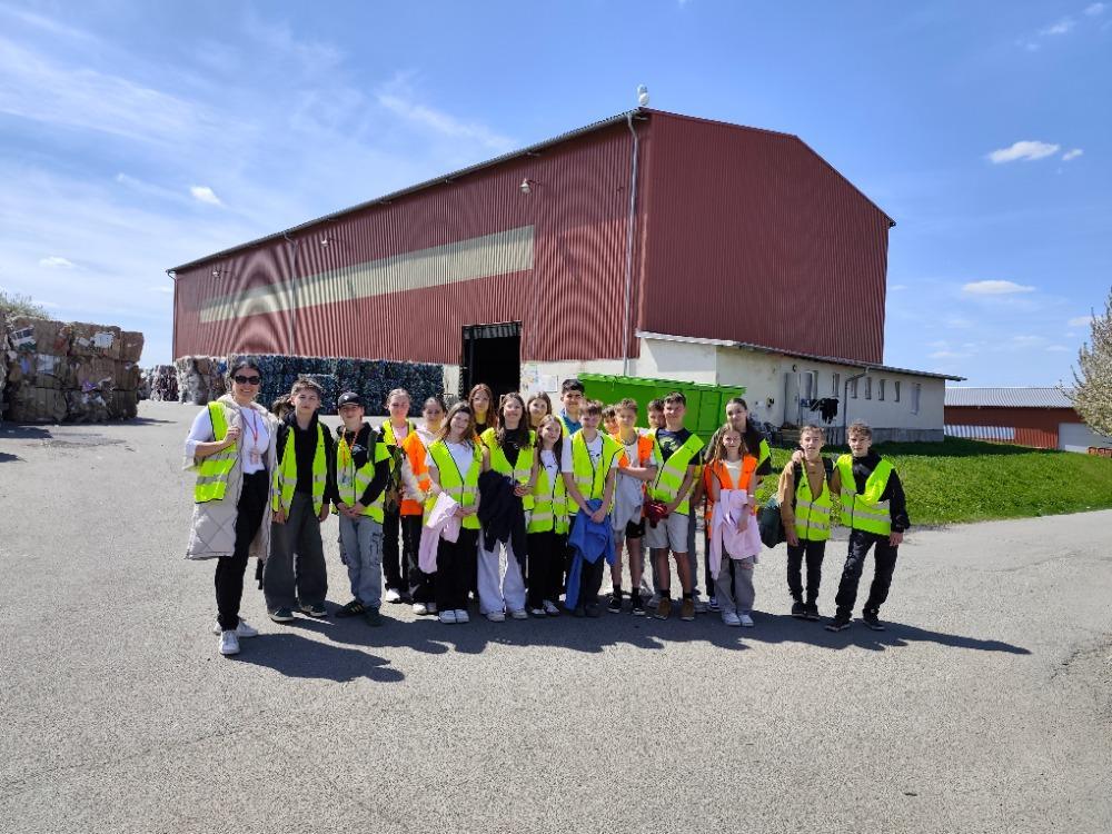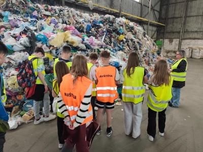 Svěží procházkou jsme vyrazili od školy ke sběrnému dvoru, kde už na nás čekala paní Radka Kejíková z firmy Recovera, aby nás provedla oběma místy a žákům nastínila, jak je to s odpady, které produkujeme. Protože jsme procházeli prostory za plného provozu, nutnou výbavou byly reflexní vesty. Nestačili jsme se divit, jak to kolem nás kmitalo a jak je práce s odpady náročná.