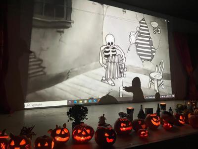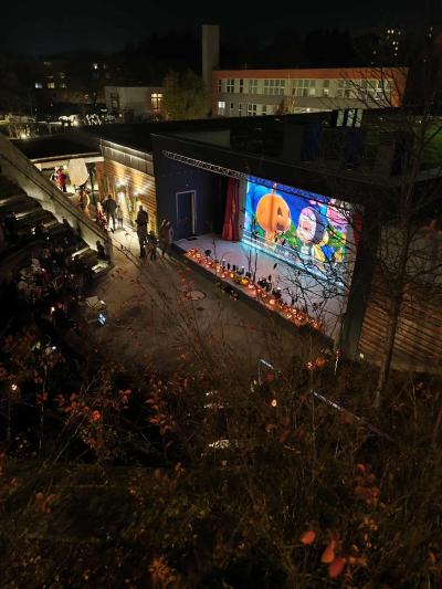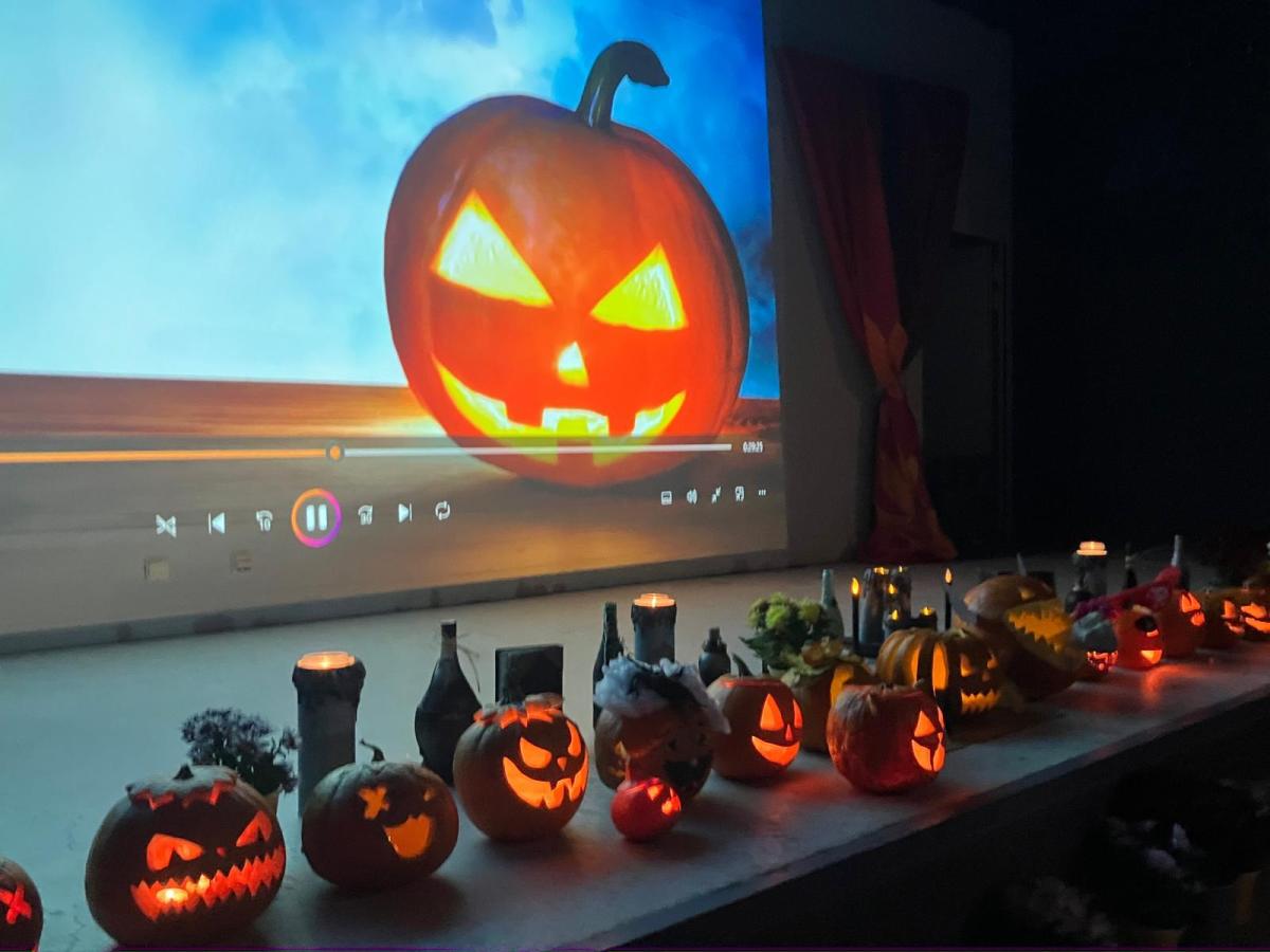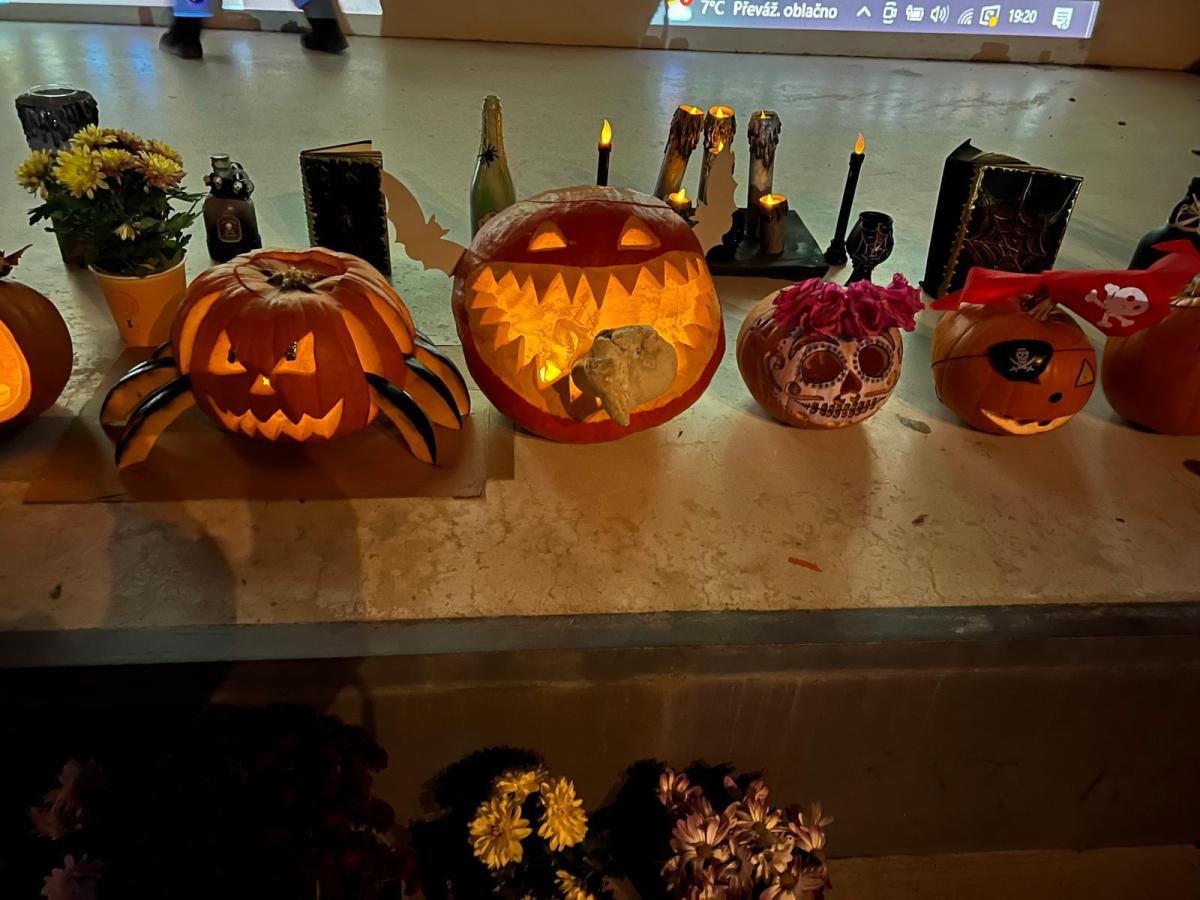 Pak už bylo na řadě opékání párků, focení v některém z fotokoutků a hlavně přehlídka úžasných dýní, které díky 45 rodinám rozzářily a zkrášlily celý amfiteátr. Tam si také nakonec mohli všichni odpočinout při veselém promítání krátkých halloweenských pohádek.