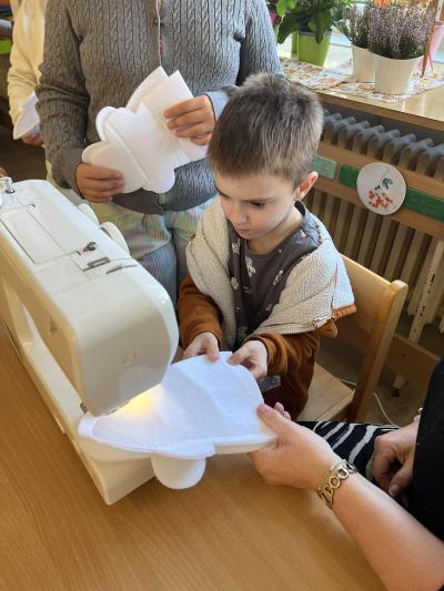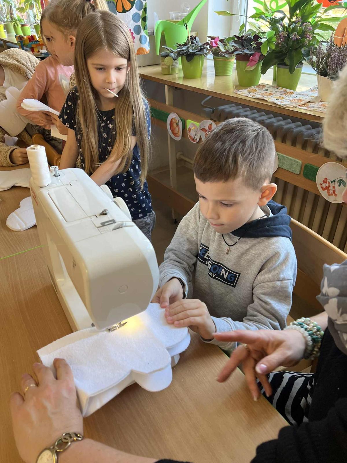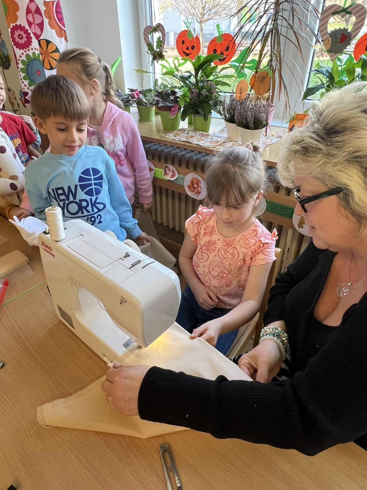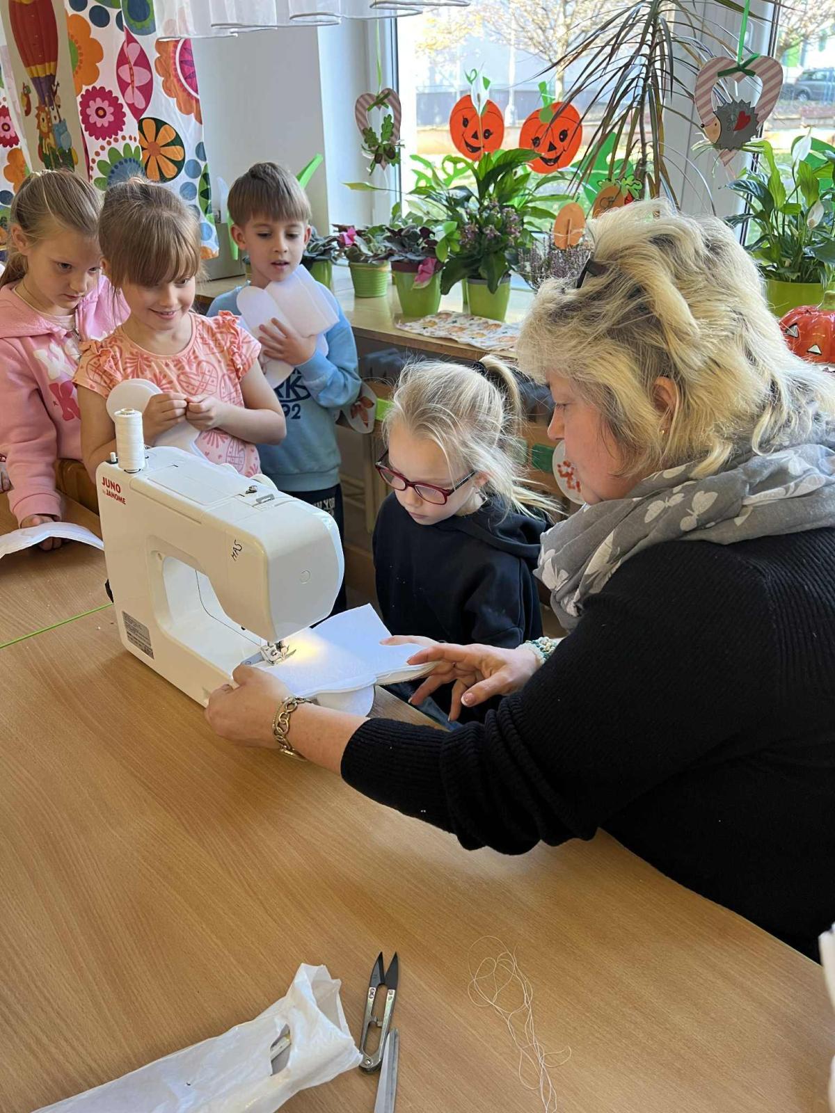 V úterý 4. 11. do zeleného oddělení ŠD za dětmi přišla lektorka MAP Boskovice paní Petra Lišková, aby dětem ukázala, že šití na stroji zvládnou i ony.