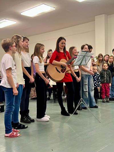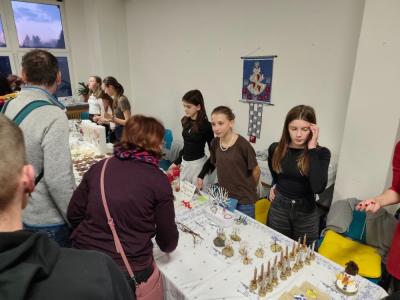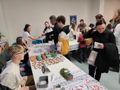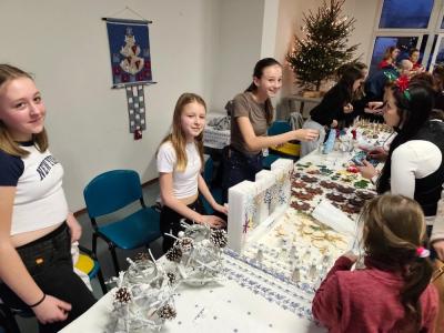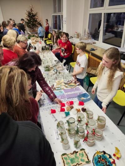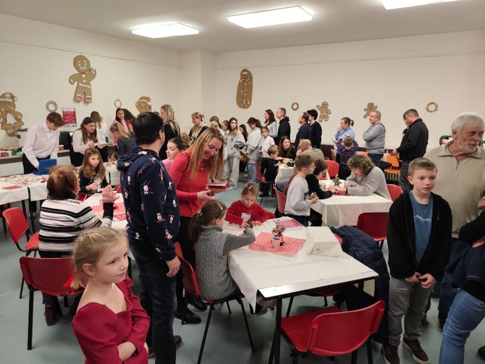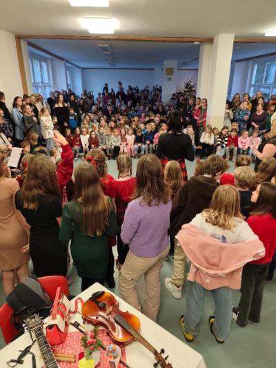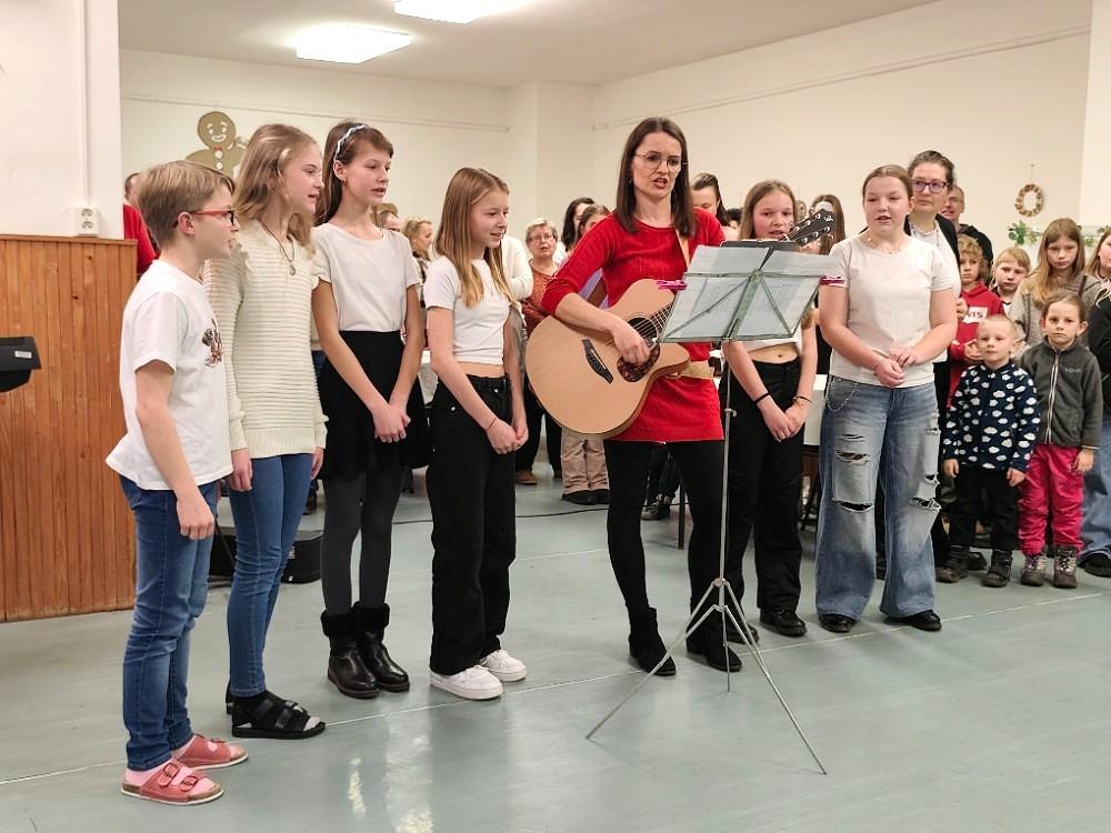 Připraveno bylo také hudební pásmo plné zpěvu koled, českých i zahraničních písní a tancování, které se svými žáky nacvičily paní učitelky I. a II. stupně. Poté se návštěvníci mohli rozejít do adventních dílniček ve třídách I. stupně, občerstvit se v naší kavárničce nebo se vyfotit v připraveném fotokoutku. Potěšil nás také velký zájem přítomných o zakoupení krásných výrobků našich žáků, paní učitelek, asistentek i vychovatelek. Výtěžek z jarmarku bude použit pro nadstandardní vybavení školy pro děti.
