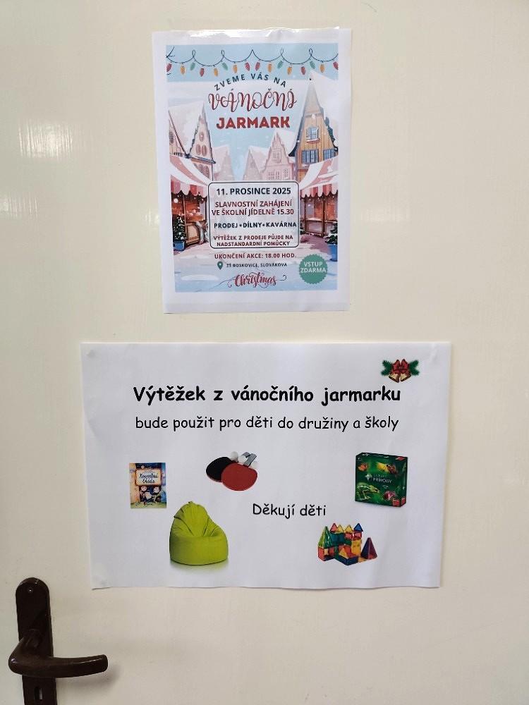 Na čtvrtek 11. 12. si připravili zaměstnanci a žáci naší školy Vánoční jarmark. Slavnostní zahájení proběhlo v jídelně školy, kde přítomné pozdravila ředitelka školy Jitka Vaňková i starostka města Jana Syrovátková.